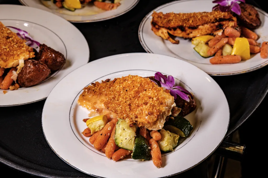 Our house specialties include honey pecan crusted Salmon, Caribbean tilapia with a pineapple mango salsa, Chateaubriand served with our famous horseradish crème sauce, and our fabulous “duet creations”. Just to name a few. Your event will be customized just for you, with your favorite selections from our extensive menus.
